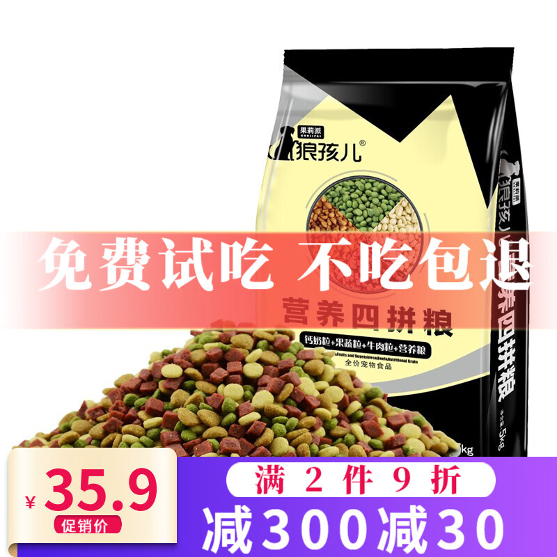 狼孩儿成犬幼犬泰迪金毛萨摩马犬拉布拉多哈士奇阿拉斯加大型中小型犬 5kg四拼粮(牛肉粒 钙奶粒)