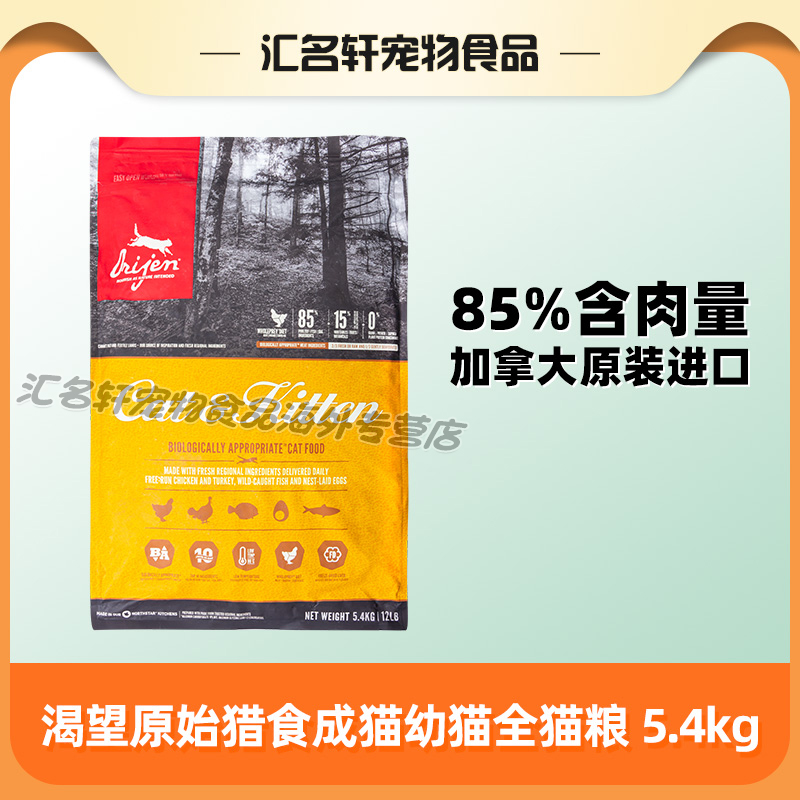 【保税发货】5.4kg猫粮Orijen渴望进口爱猫增肥无谷六种鱼成幼猫