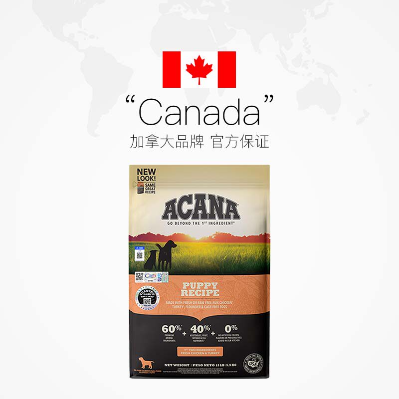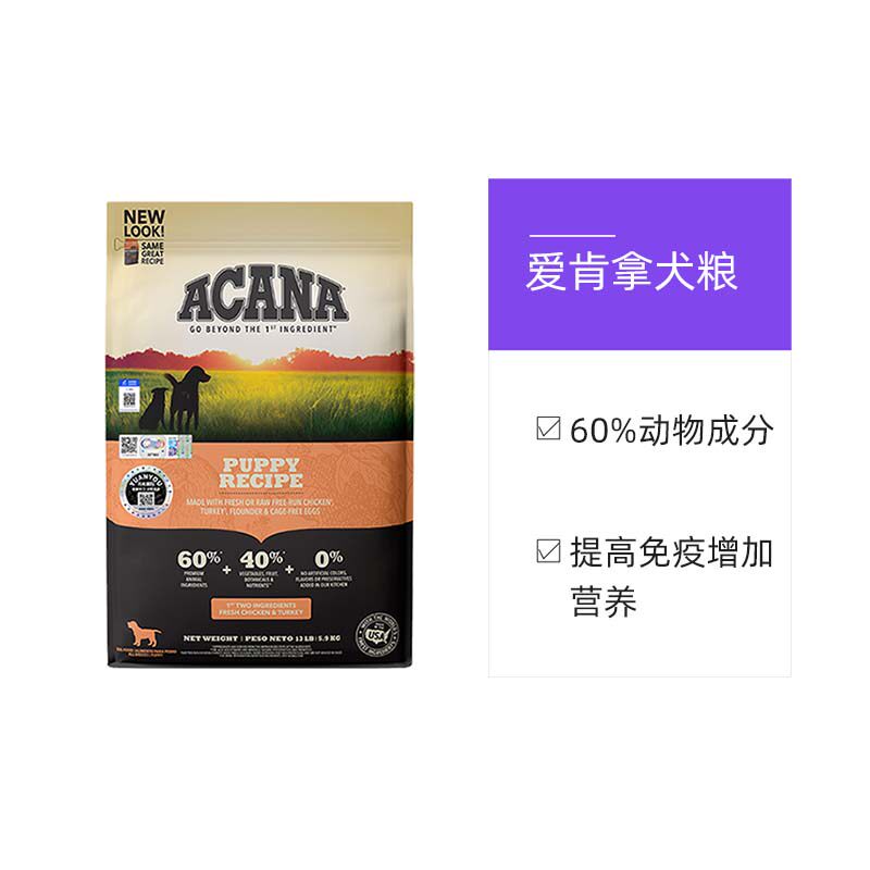 【自营】爱肯拿幼犬犬粮鸡肉味天然无谷通用全价进口犬粮5.9kg