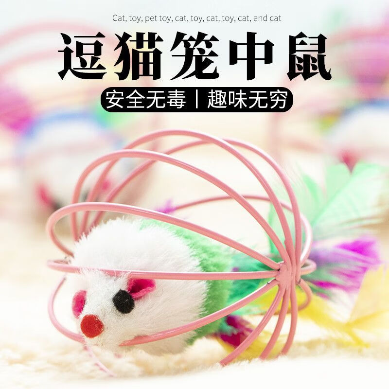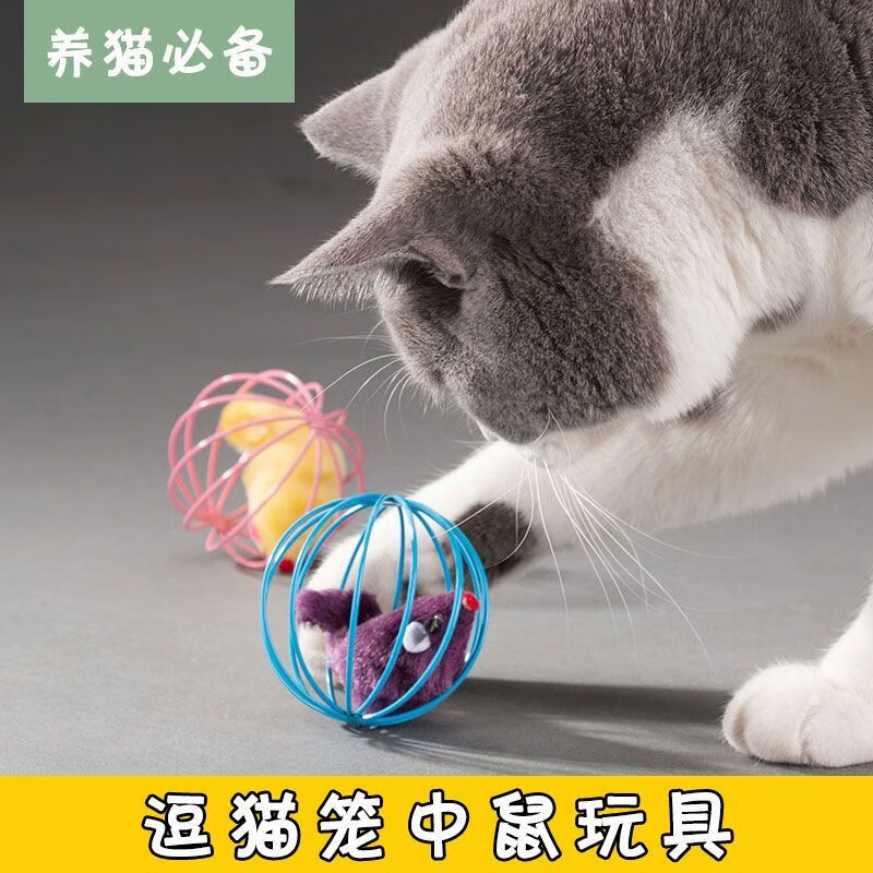 猫玩具笼中鼠囚笼羽毛尾巴老鼠耐抓耐咬大号铃铛球形猫咪自嗨玩具 养猫【消除无聊 结实耐玩】 活动:买一餸一【共2个】马上结束