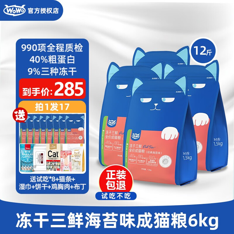 喔喔(WOWO)猫粮成猫老年猫海苔冻干三鲜全阶段全价猫干粮英短美短布偶猫通用 【超值款】海苔味6kg/12斤
