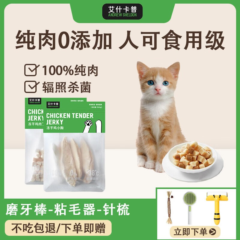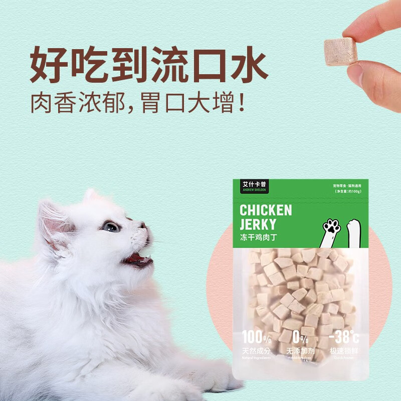 艾什卡普鸡小胸鸡肉丁冻干猫零食大块纯肉干宠物磨牙猫狗通用 冻干鸡肉丁1袋装【每袋约100g】