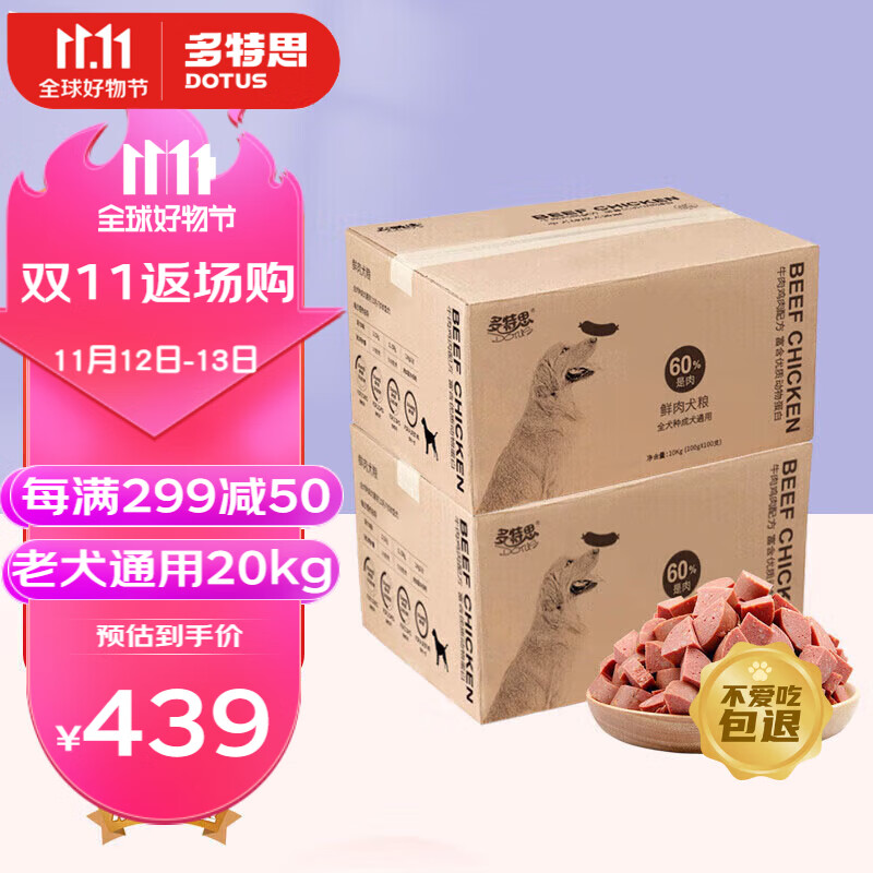 多特思鲜肉狗粮量贩装 全犬种通用型 【预售】老犬牛肉味20kg