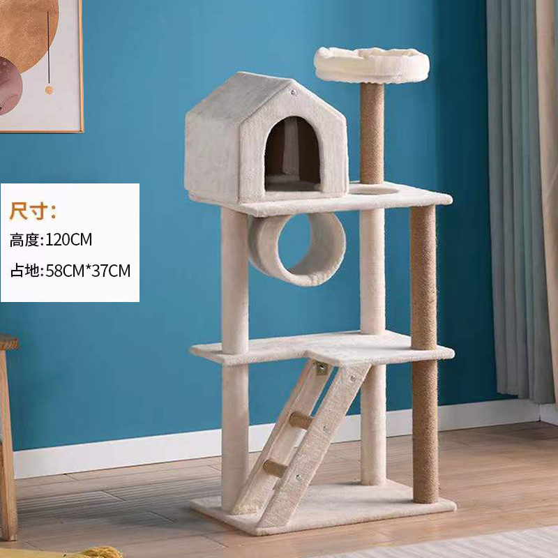猫窝四季通用猫爬架猫窝猫树一体四季通用小型猫架子猫跳台猫抓板猫咪宠物用品 木屋豪华别墅【米色 温馨木屋】