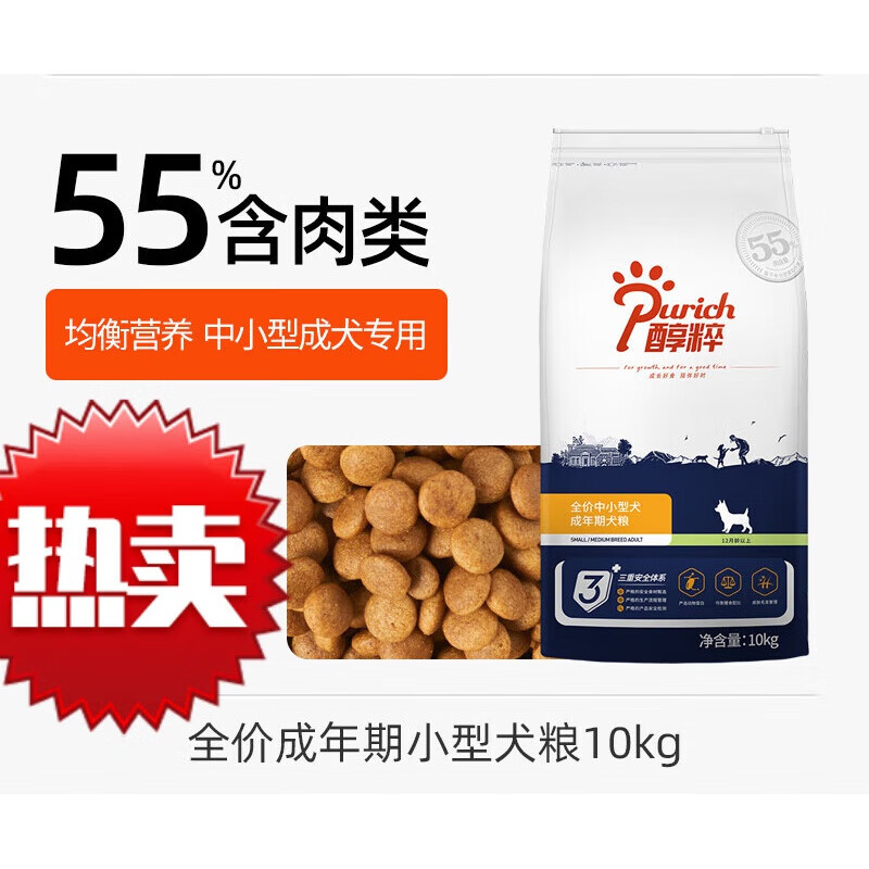 醇粹(Purich)狗粮成犬通用型中小型犬全价纯粹10kg20斤装 55%肉含量 10kg /包