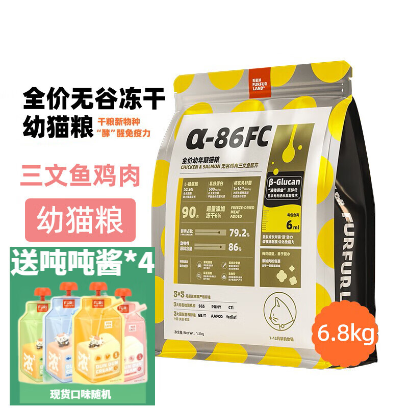毛星球(FurFur Land)全价无谷猫粮鸡肉三文鱼海洋鱼黑酵母冻干成幼猫粮添加冻干粮 幼猫粮6.8kg