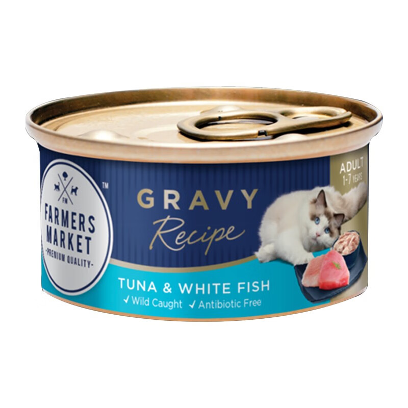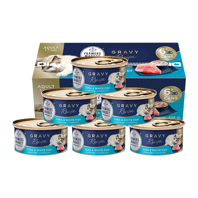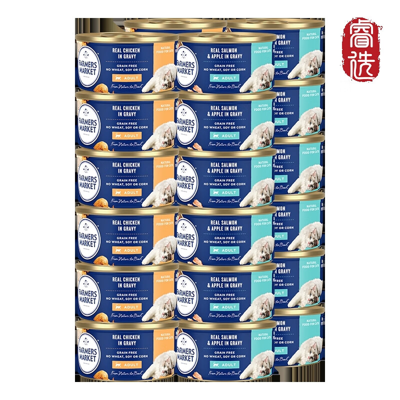 澳洲Farmers Market蓝宝食主猫餐盒 原装进口猫零食营养发腮补水猫罐头 现有口味混合口味80g*24罐