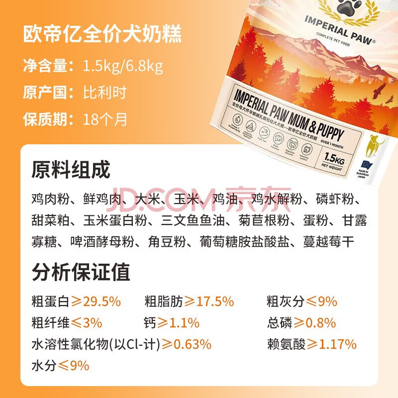 欧帝亿(IMPERIAL PAW)狗粮全价通用狗粮主粮小型犬成犬幼犬粮大型犬狗粮 全价幼犬奶糕哺乳期粮1.5kg