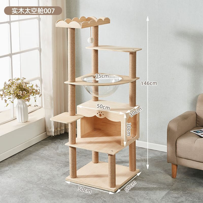 猫爬架实木架子大猫咪太空舱猫窝上下铺多层通用必备品新款 实木太空舱007纸柱