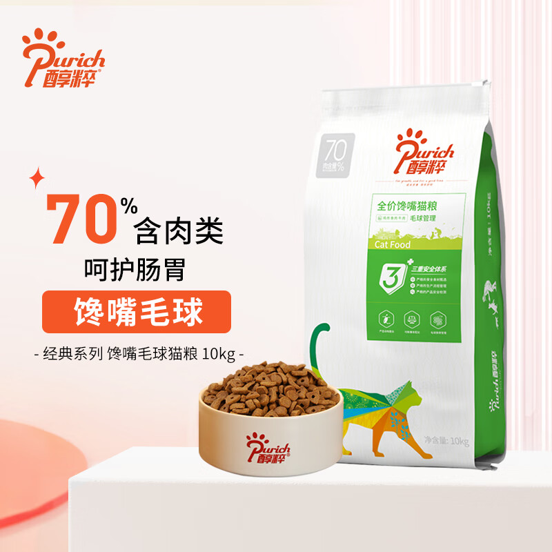 醇粹 室内纯粹猫粮 成幼猫全年龄期全价全营养 理想体态 优选猫粮 馋嘴毛球管理猫粮10kg