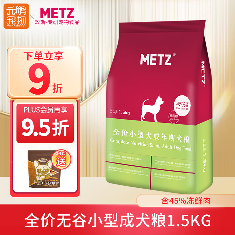 玫斯(metz)狗粮 小型成犬幼犬泰迪博美法斗通用型无谷粮 小型犬成犬粮1.5kg