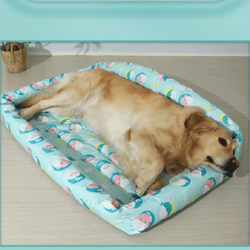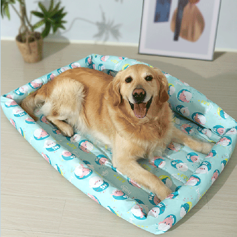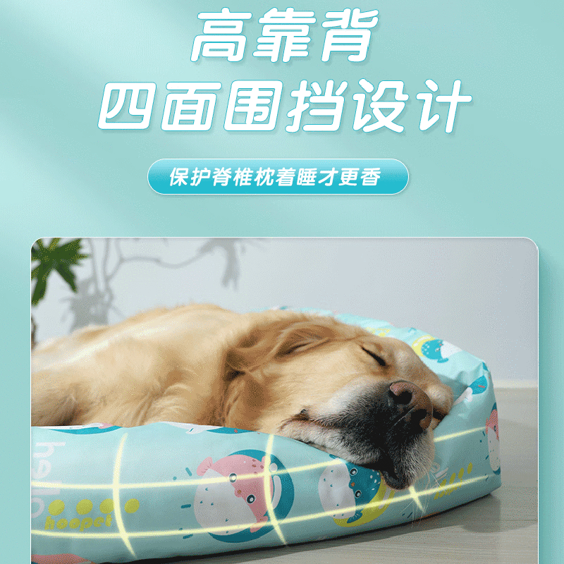 hoopet狗窝狗狗冰垫狗垫子耐咬睡觉用夏天泰迪小型犬宠物冰窝凉席金毛大型犬睡垫降温凉垫地垫夏季凉窝 高靠背狗窝-浅黄凉席 L-大号(建议50斤内宠物)