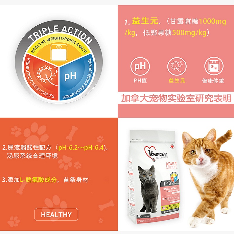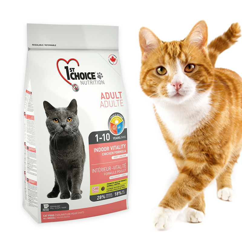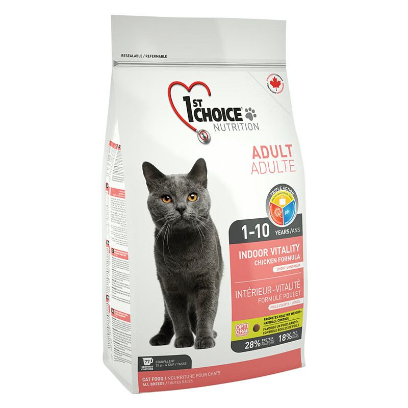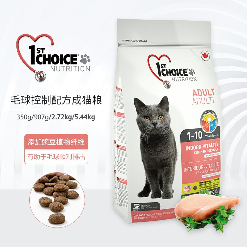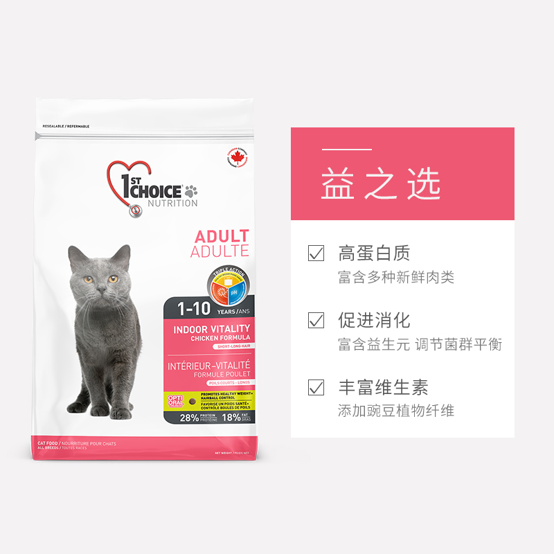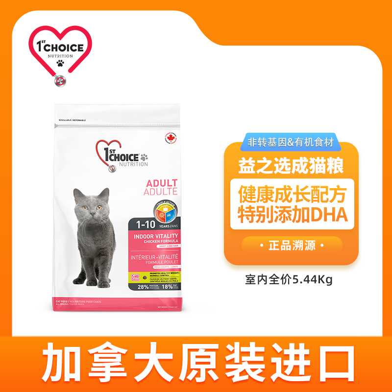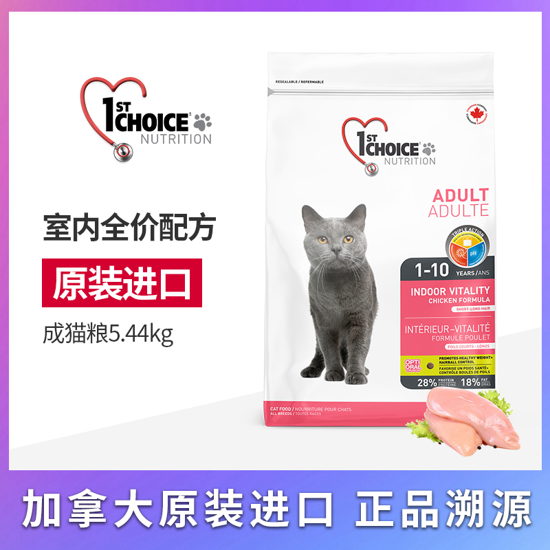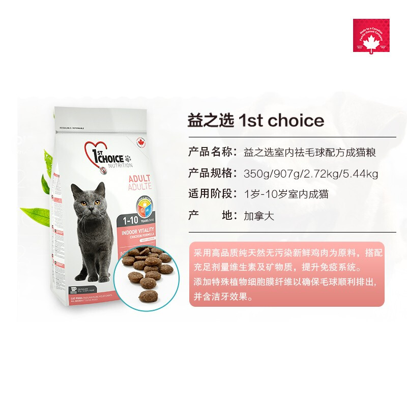 加拿大原装进口 益之选(1'st choice)成猫粮 室内全价去毛球配方5.44kg天然粮鸡肉配方主食喵咪主粮