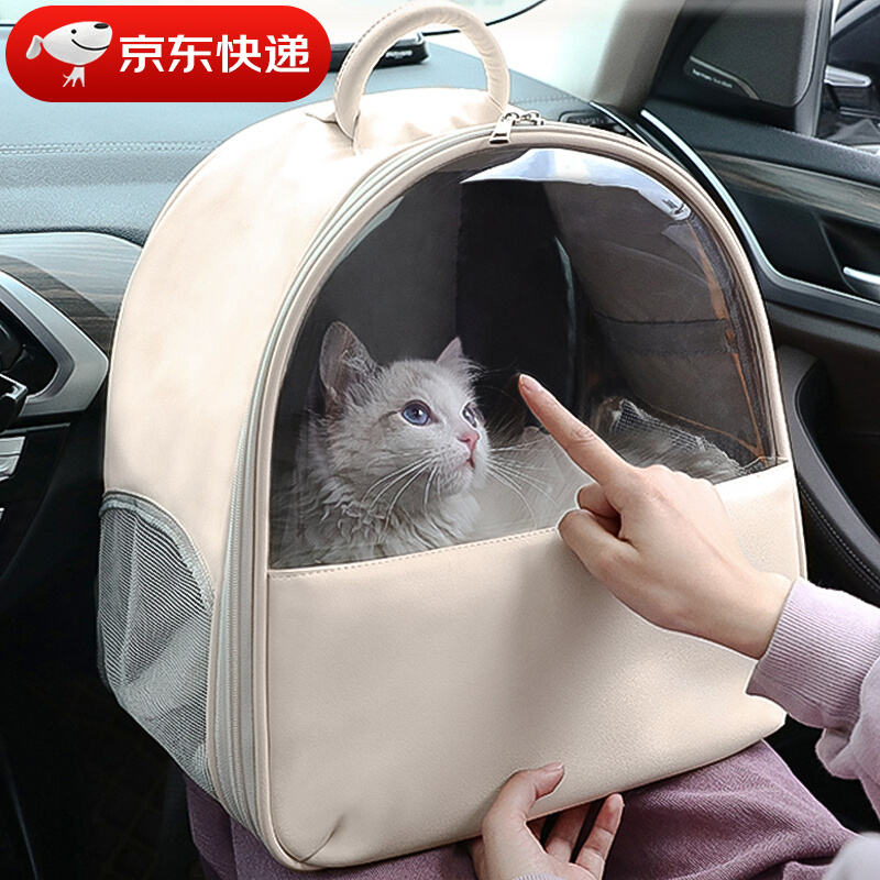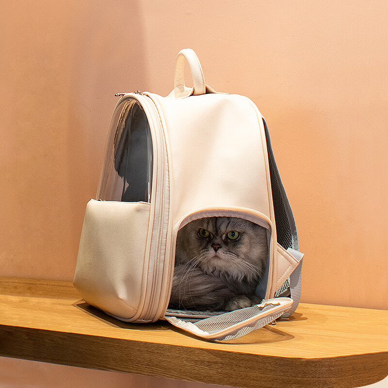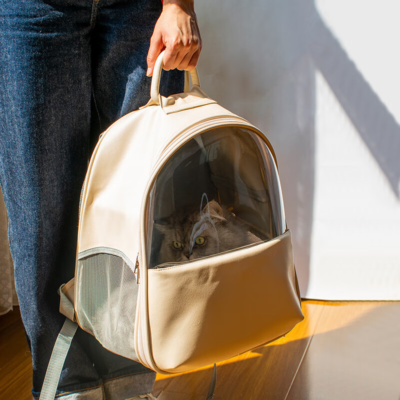 汤琪猫包外出便携宠物双肩背包大号透气猫咪狗狗太空舱航空箱车载书包可手提 奶茶色小号 31*20*35cm 适合8斤内猫咪