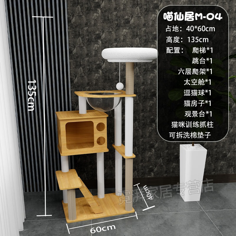 猫爬架子猫窝猫树一体实木猫抓板剑麻猫架笼子高层城堡跳台太空舱 【两口-健康生活】喵仙居M-04
