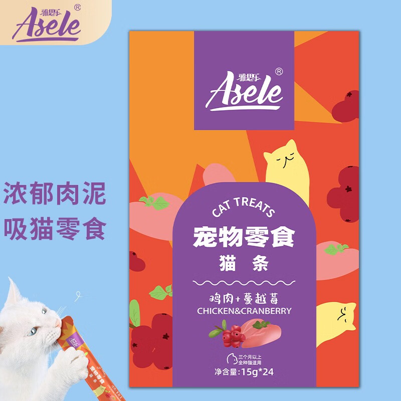宠怡雅思乐猫零食猫咪湿粮猫吸条24支化毛美毛呵护肠胃猫粮拌饭增肥 鸡肉 蔓越莓-24支