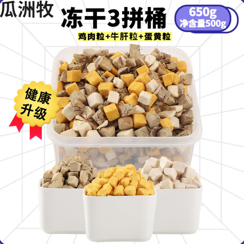 瓜洲牧冻干狗狗零食小型犬幼犬泰迪鸡胸肉训犬奖励宠物磨牙棒冻干狗粮桶 混合三拼 店长净含量500//g g