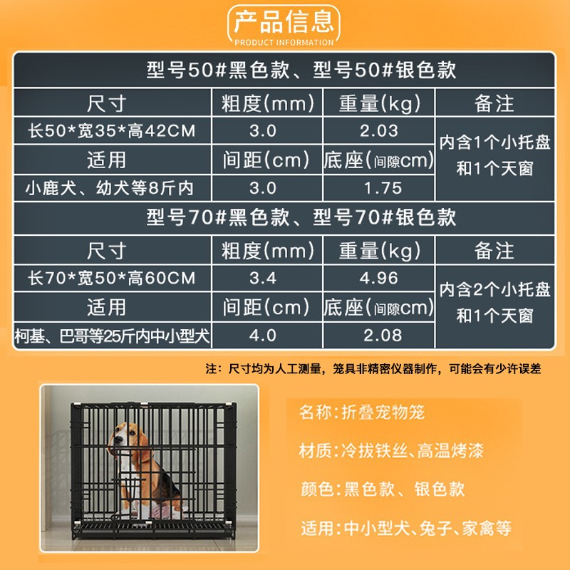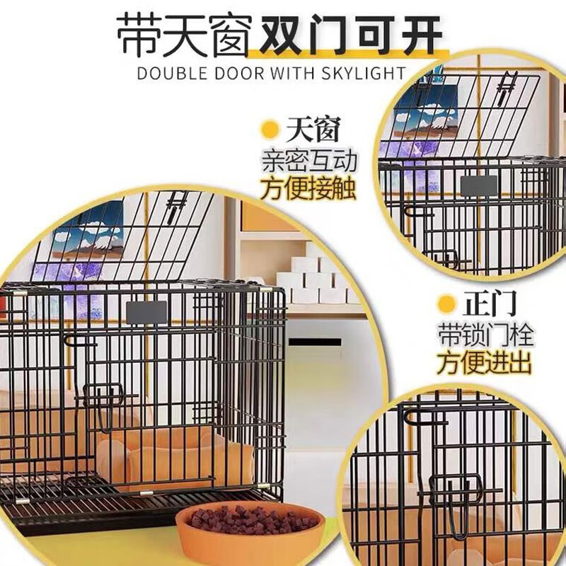 亲卫狗笼猫笼狗笼子小型犬幼犬加粗加密折叠便携猫笼子泰迪比熊猫咪狗狗用品兔笼带底部托盘带天窗狗丝笼