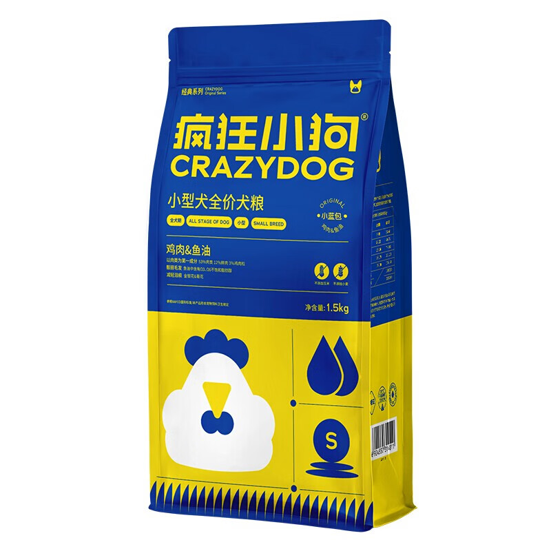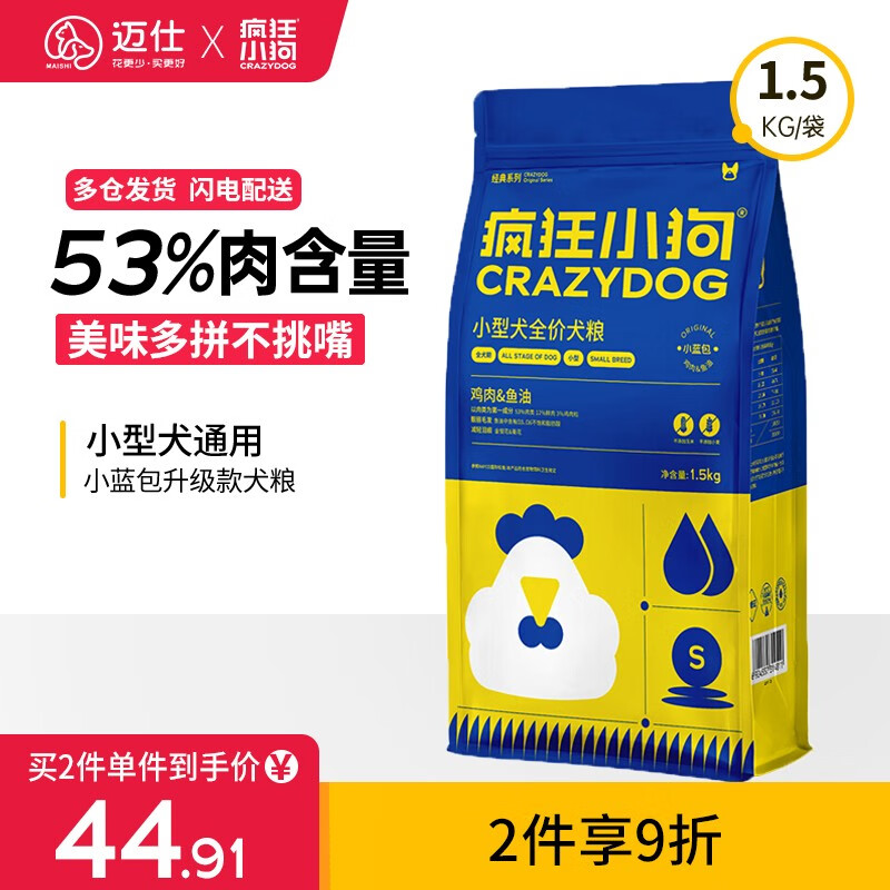 疯狂小狗 狗粮小型犬幼犬成犬泰迪贵宾博美比熊通用型肉粒双拼粮 升级款小蓝包1.5kg