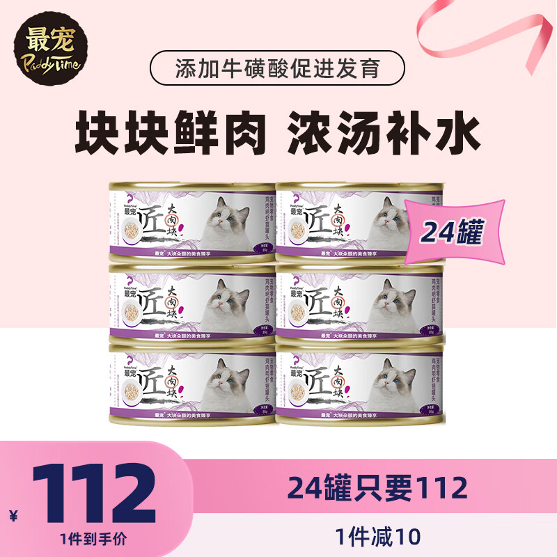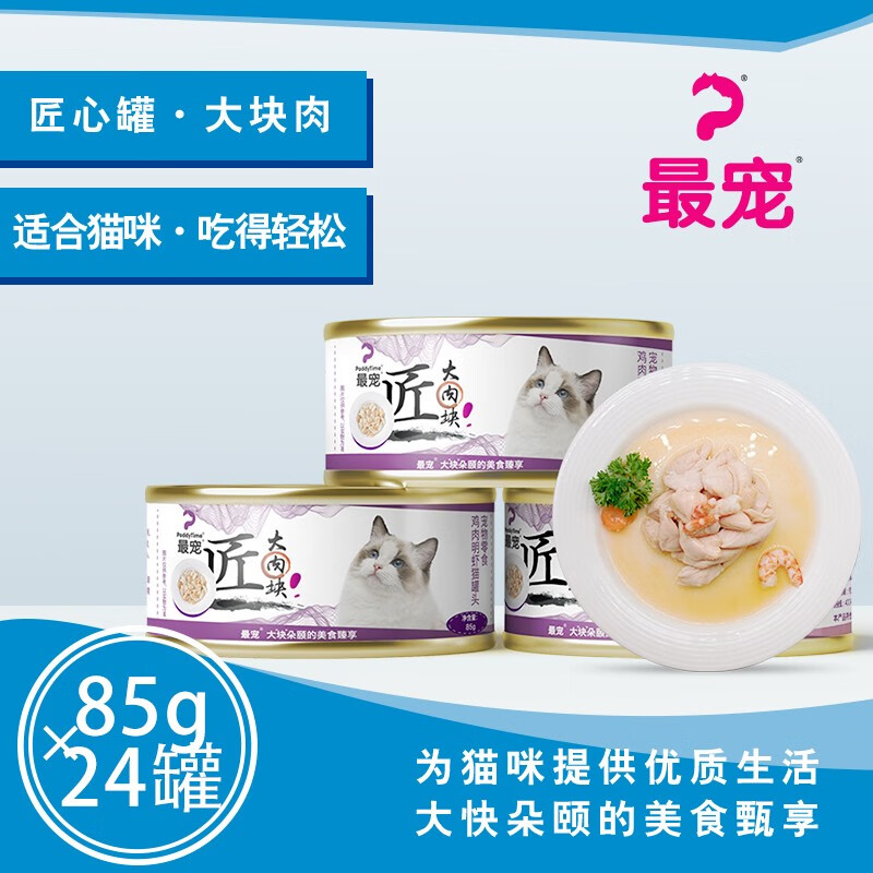 最宠(Paddy Time)猫罐头 大肉汤猫罐头宠物零食罐汤汁鲜肉猫粮猫湿粮成幼猫 鸡肉明虾汤罐85g*24罐