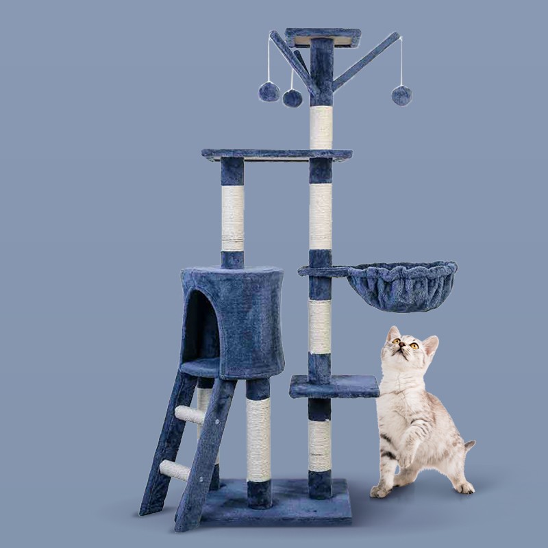迪普尔猫爬架带窝【加高加粗型】猫树洞大型猫架子猫咪猫架猫窝一体猫树猫抓架剑麻藤席加绒爬爬架 青灰色五层猫爬架(1.38米) *