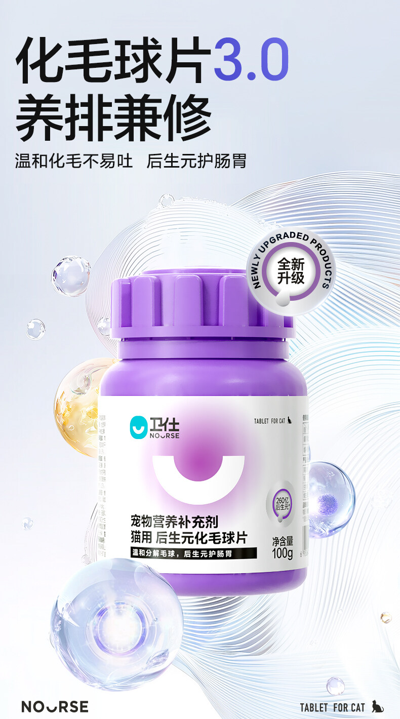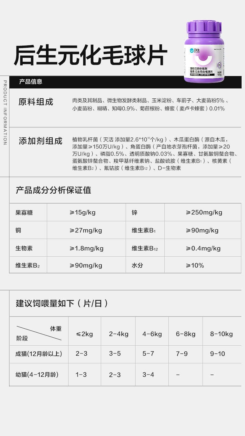 卫仕 后生元化毛球片猫草片100g