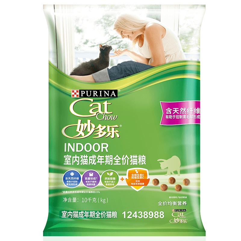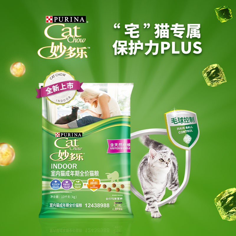 妙多乐(CAT CHOW)猫粮 成猫室内猫粮 均衡营养 控制去毛球 英短美短蓝猫通用 10kg