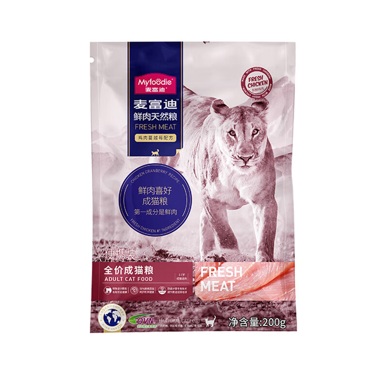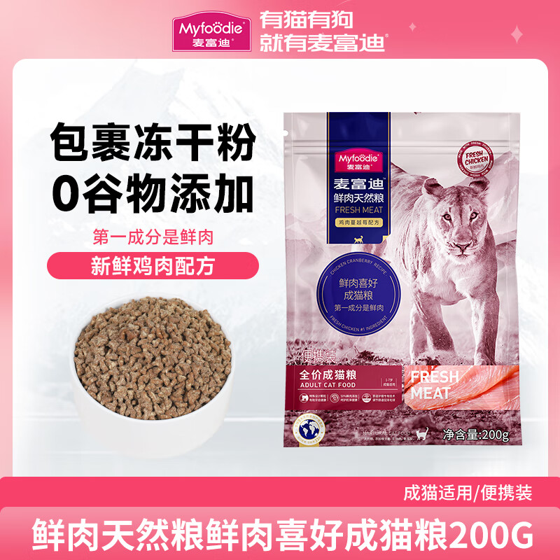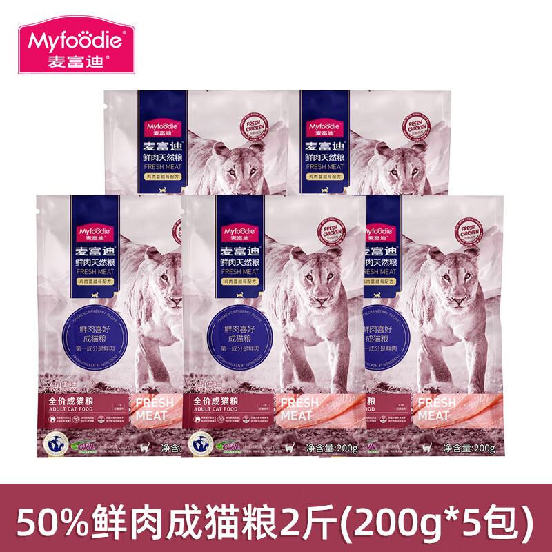 麦富迪(Myfoodie)猫粮 50%鲜肉天然粮鲜肉喜好鸡肉蔓越莓全价成猫粮 鲜肉成猫粮1kg(200g*5袋)