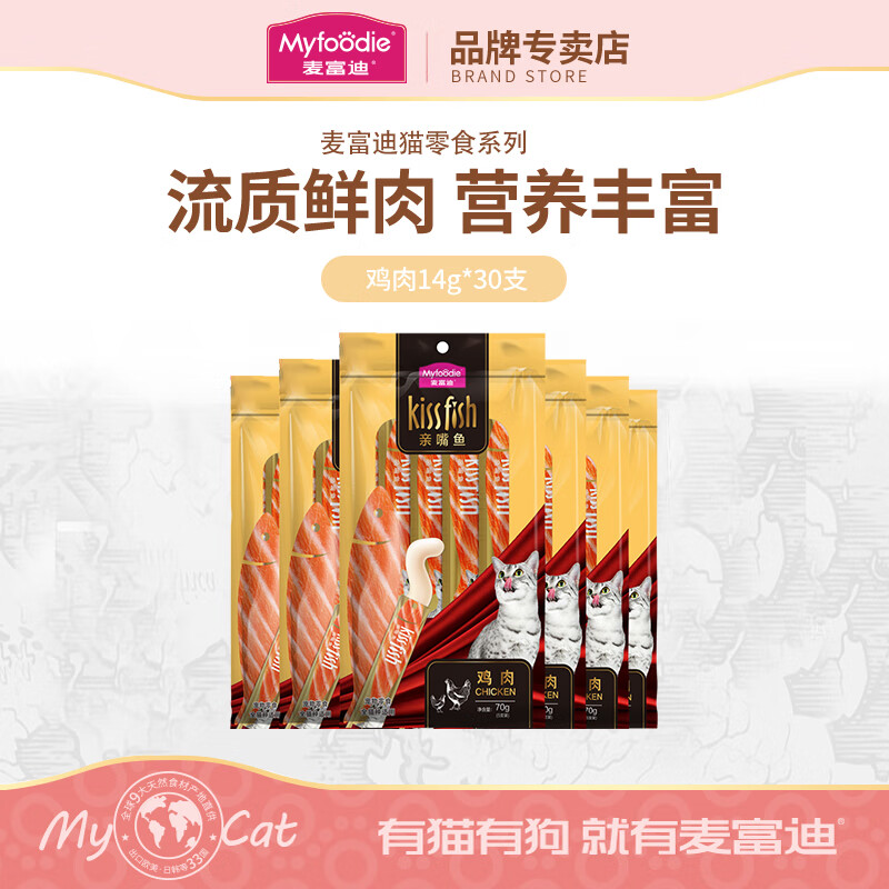 麦富迪猫条猫零食 湿粮亲嘴鱼营养补水幼猫肉酱 鸡肉14g*30支
