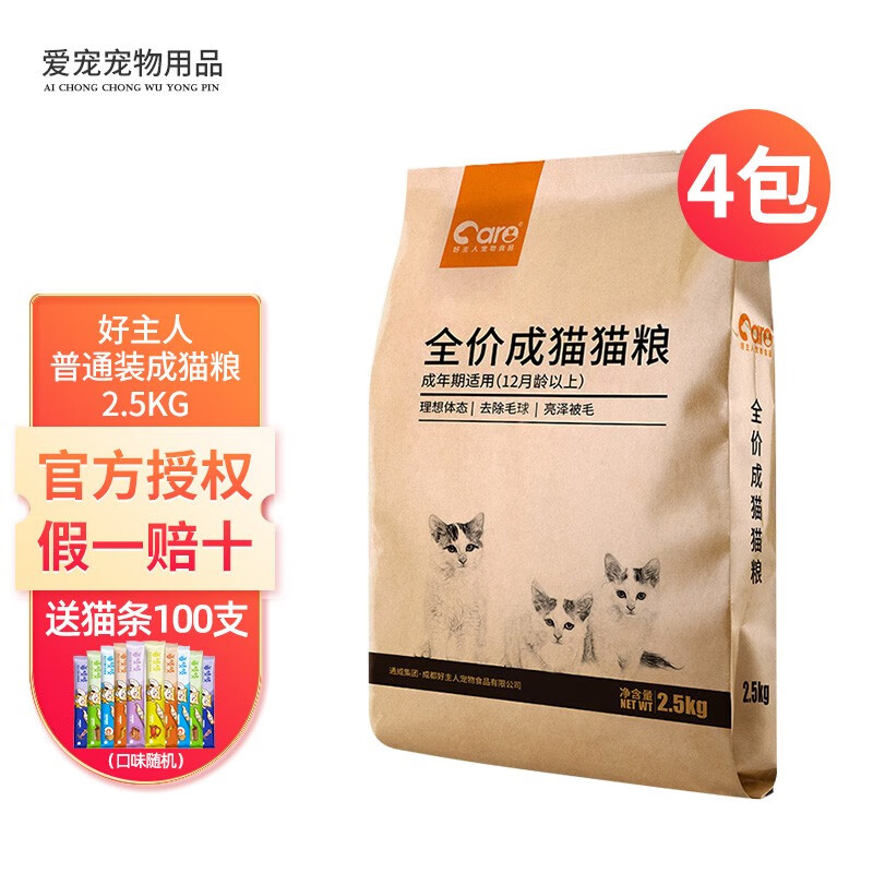 好主人(CARE)猫粮2.5kg 金装成猫猫粮幼猫猫粮全价冻干猫粮无谷粮猫干粮猫主粮 全价成猫粮 2.5kg*4包