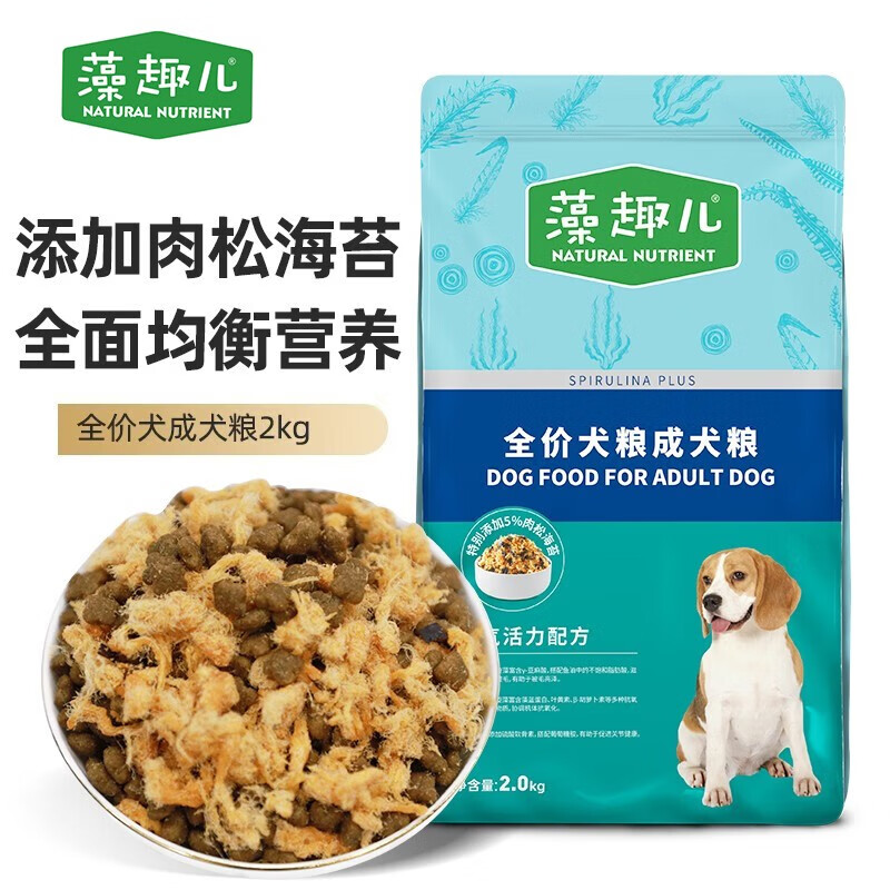藻趣儿狗粮 全价通用肉松犬粮全新升级肉松海苔款 肉松粮成犬2kg 添加蛋黄|奶糕粮2kg