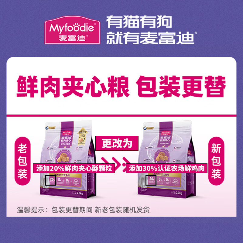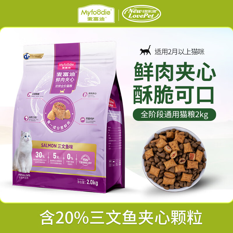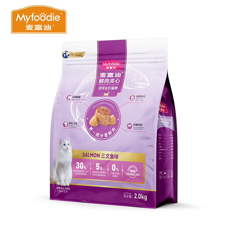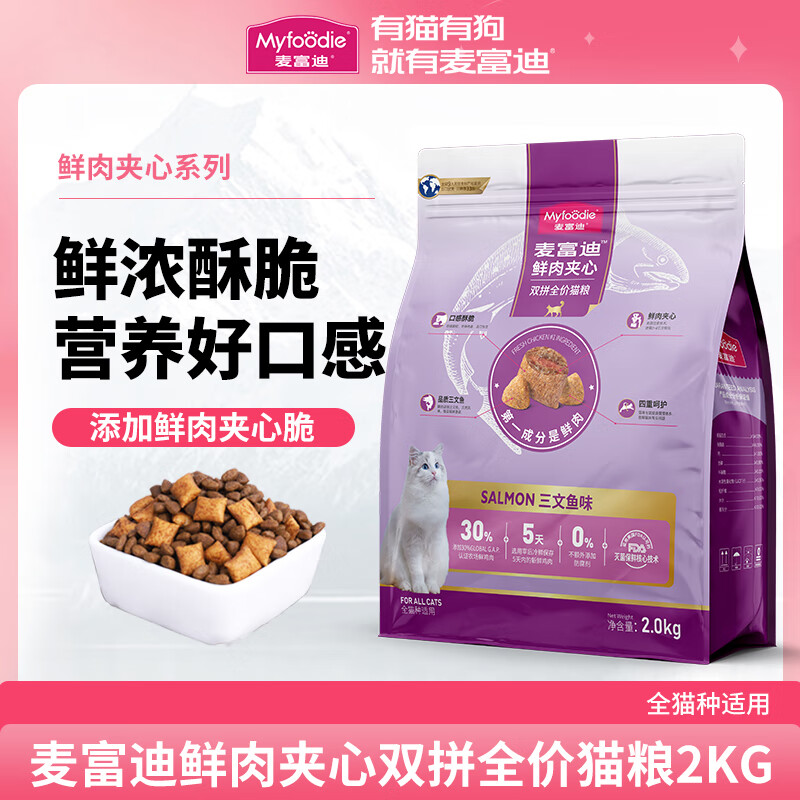 麦富迪猫粮 鲜肉夹心双拼成猫幼猫通用型全期猫主粮 升级款2kg(含20%三文鱼夹心)