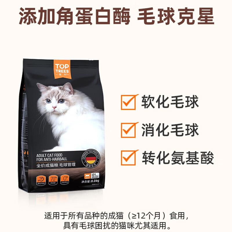 领先( Toptrees) 全价成年猫粮成猫专用增肥营养深海鱼消化毛球8kg