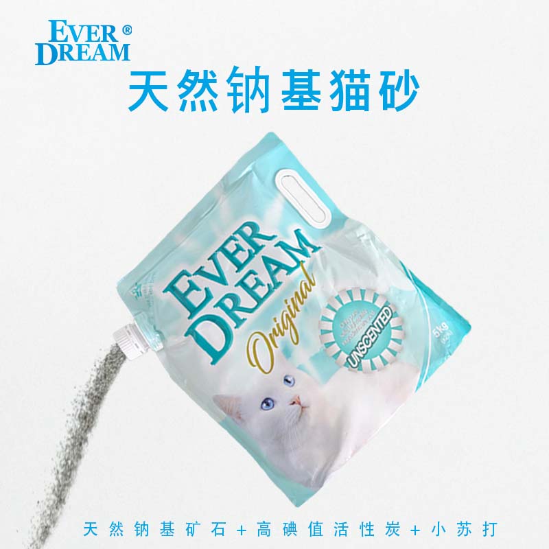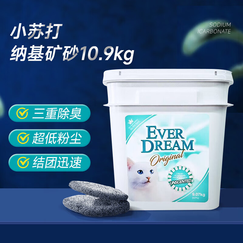 蓝梦(Ever Dream)天然钠基矿砂矿石猫砂活性炭除臭低尘破碎混合膨润土猫沙 小苏打钠基矿砂桶装9.07kg