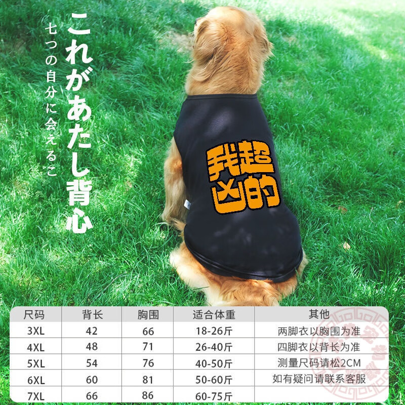金毛衣服夏季大狗狗衣服夏季薄款金毛萨摩耶拉布拉多夏天透气中型犬大型犬 (夏季薄款)黑色超凶 6XL(建议50-60斤)