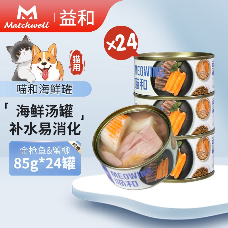 益和(MATCHWELL)益和猫罐头喵和零食汤罐营养猫粮拌饭猫咪宠物主食增肥发腮猫湿粮 【整箱24罐】金枪鱼 蟹柳