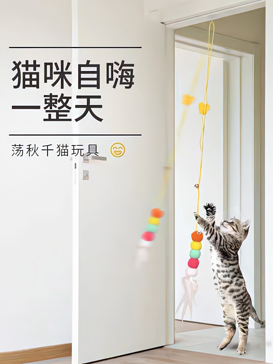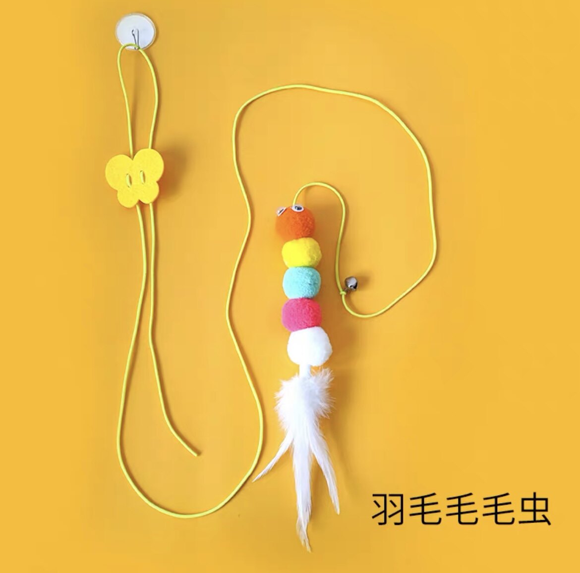 新款挂门猫咪玩具毛毛虫自嗨解闷神器荡秋千逗猫棒羽毛耐咬猫用品
