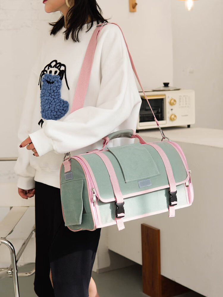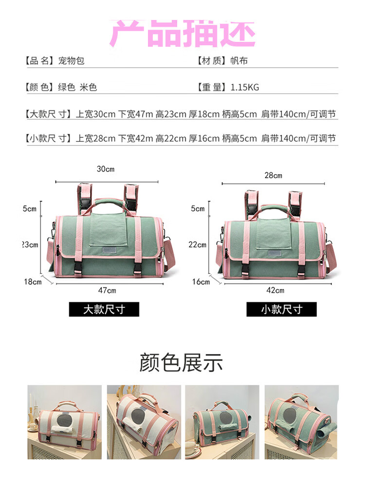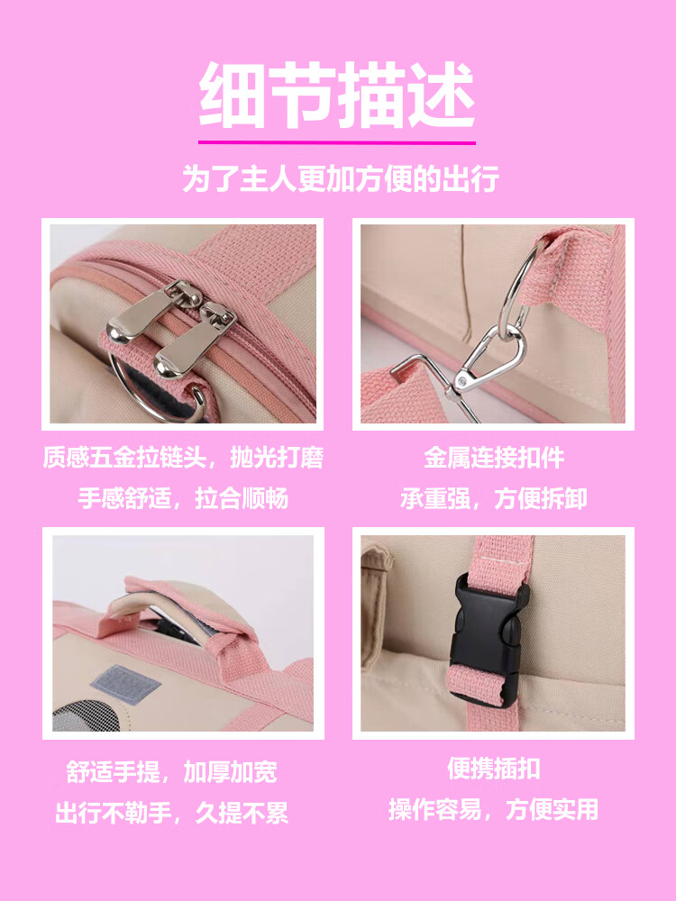搭啵兔 帆布猫包外出便携背包猫咪用品双肩大容量书包宠物包手提式狗狗包 米粉色 三合一包 M【12斤猫,10斤狗】