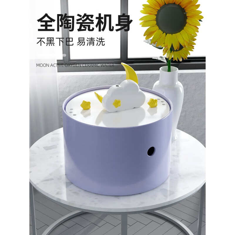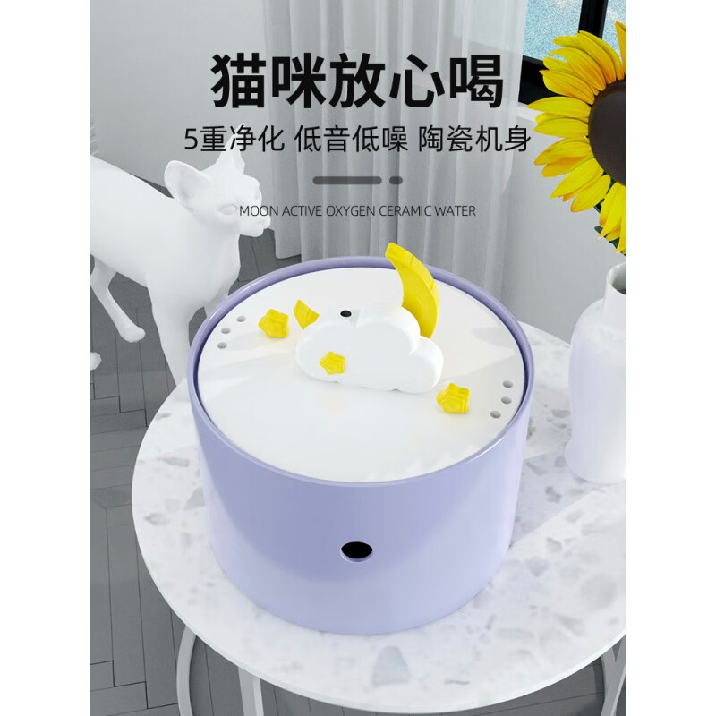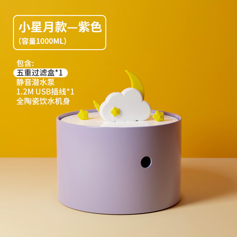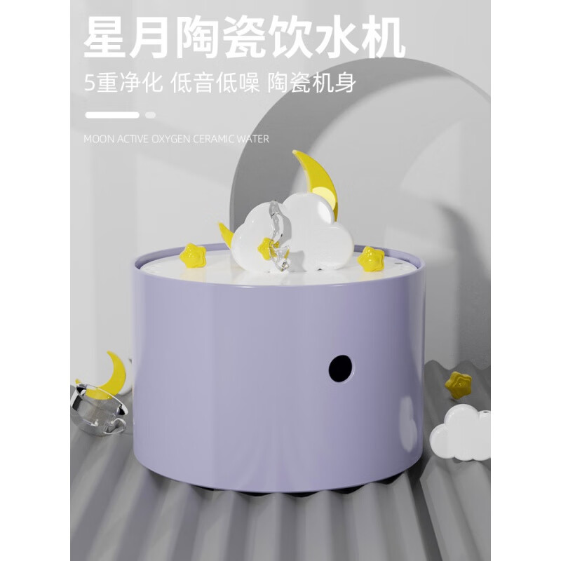 可淘气猫咪陶瓷饮水机流动饮水器自动循环活水猫喝水喂水神器宠物用品猫 星月款-1000ml【1个滤芯装】