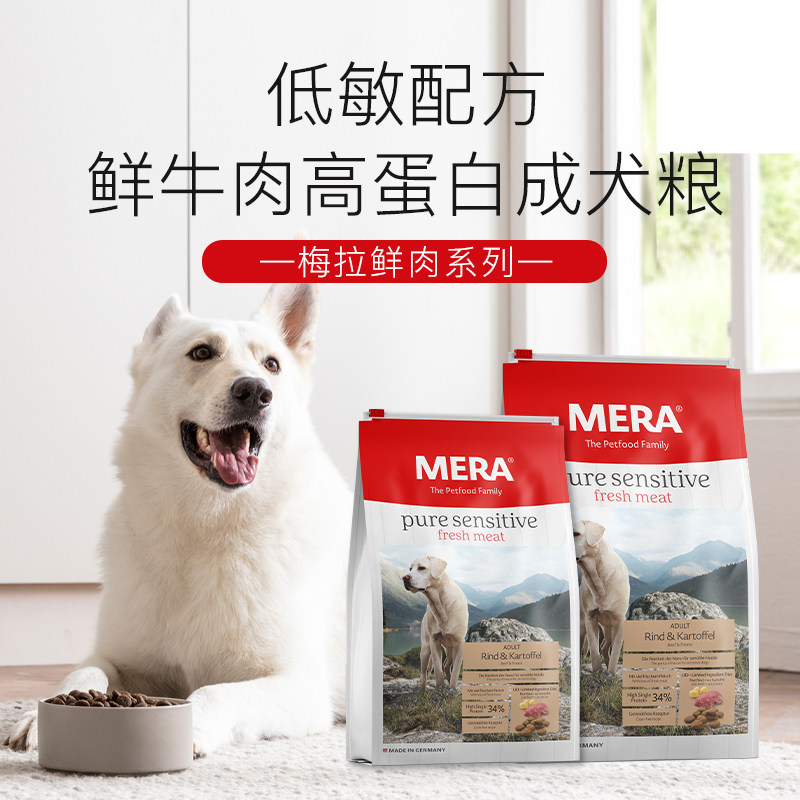 德国MERA梅拉低敏狗粮火鸡牛肉鲱鱼成幼鲑鱼油全阶段无谷鲜肉干粮
