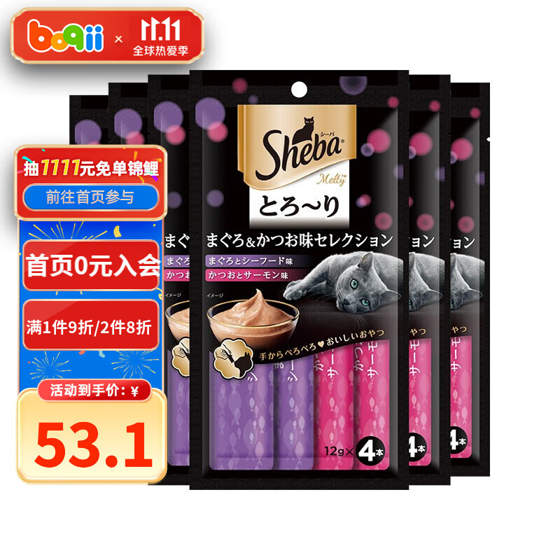 希宝(Sheba)猫条进口猫湿粮零食成猫老年猫流质猫零食营养妙鲜包罐头 海鲜 三文鱼成猫48g*6包