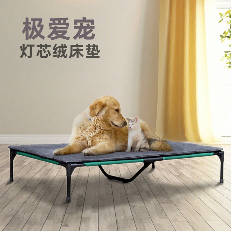 极爱宠 灯芯绒宠物床垫秋冬灯狗狗床垫子保暖可固定在床架上 兼容KH狗床 灰色 -床垫(不含行军床) 81*64cm (中码)
