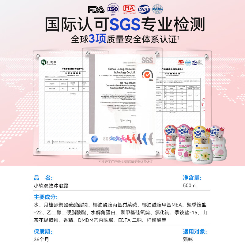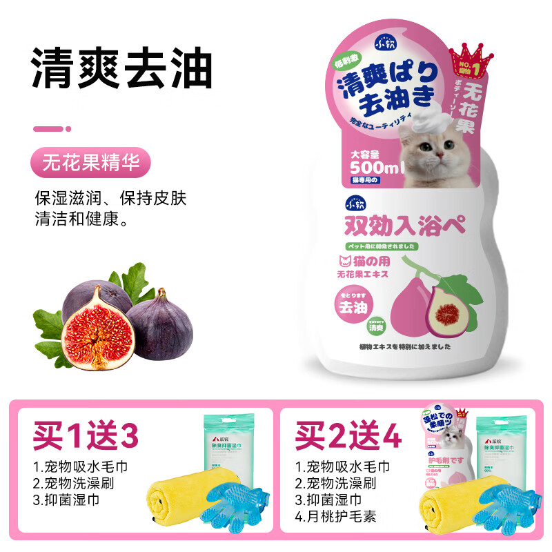 酸熊猫咪洗澡专用沐浴露抑菌除螨黑下巴油尾巴去油幼猫香波沐浴露用品 【清爽去油-无花果】 500ml