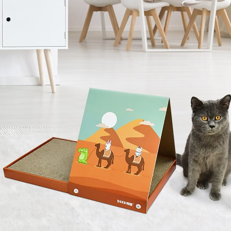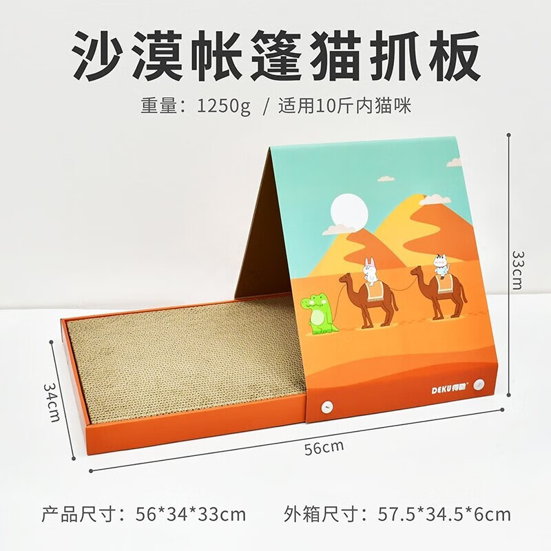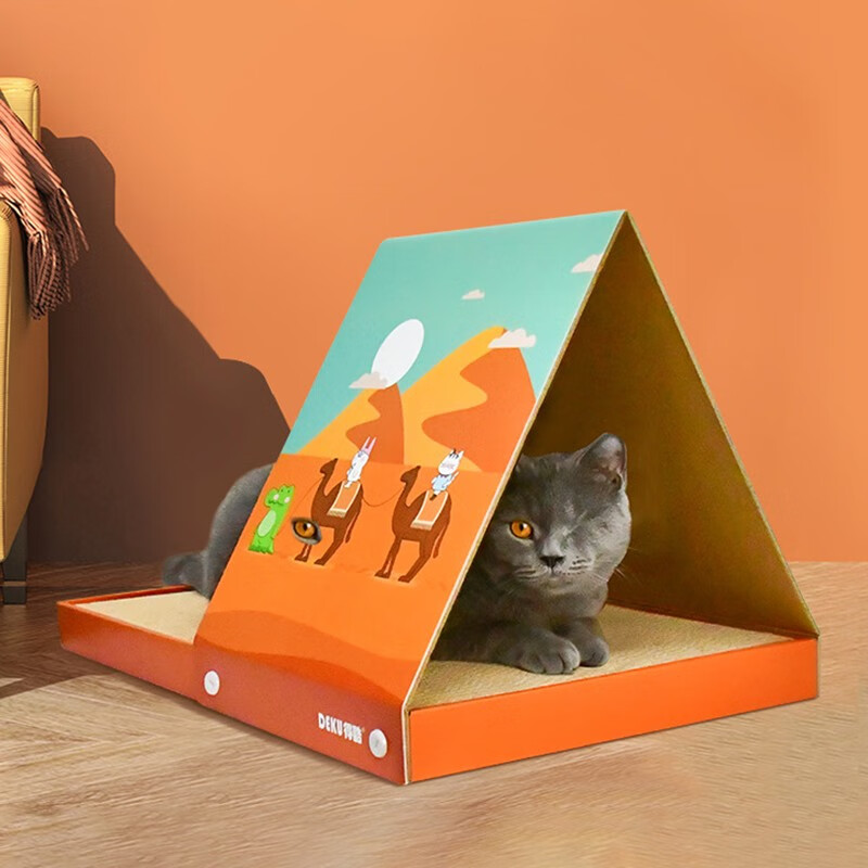 得酷 猫抓板磨爪器瓦楞纸磨爪大号猫爪板防猫抓沙发保护猫咪用品猫玩具 沙漠帐篷 适10斤内猫 56*34*33CM