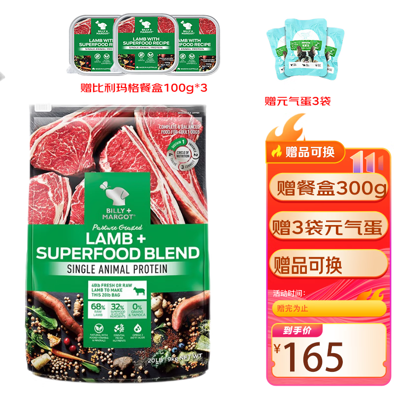 比利玛格(BILLY MARGOT)【赠品可换】澳洲无谷全价犬粮低敏成犬幼犬老年犬粮 羊肉成犬粮1.8kg