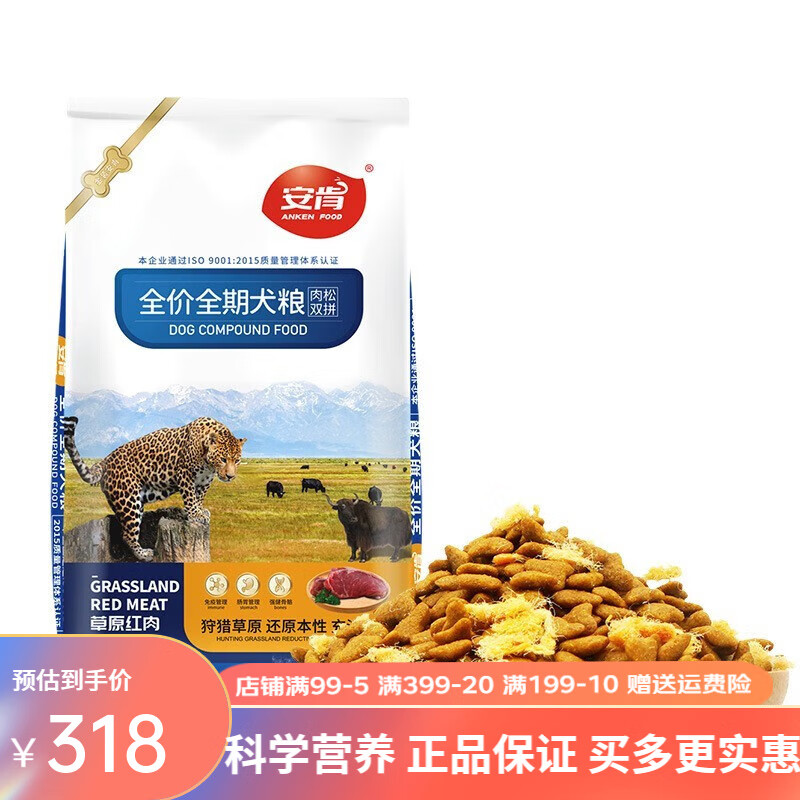 安肯20kg全价段全期犬粮肉松双拼草原红肉拉布拉多狗粮通用粮食 全期狗粮20kg(5kg*4)