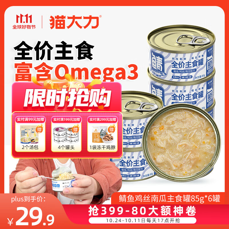 猫大力猫罐头主食罐补充营养增肥猫咪粮食12/24罐整箱鲭鱼鸡丝南瓜 85g*6罐