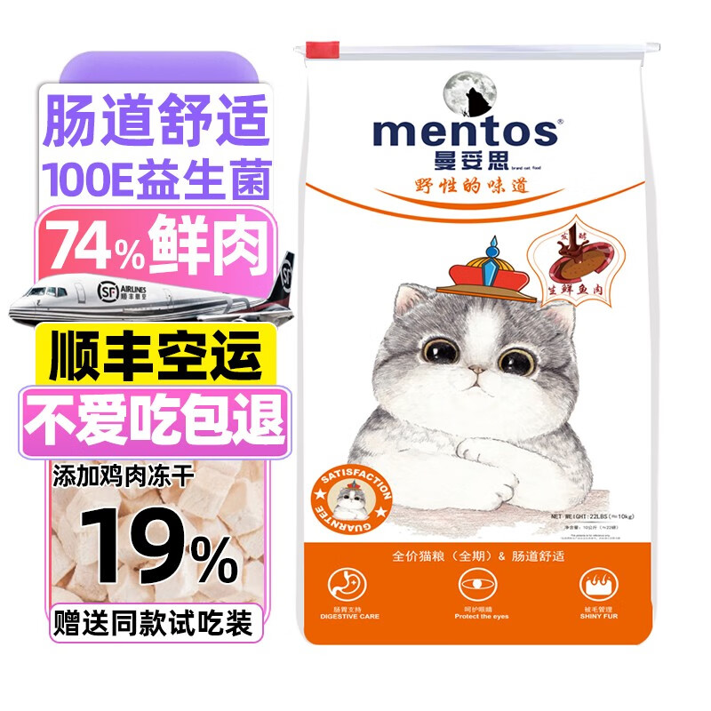 曼妥思猫粮肠道舒适护肠道添加15%冻干金枪鱼鳕鱼鸡肉无谷幼猫成猫通用全价全期小粒布偶英短 添加冻干 10千克/20斤