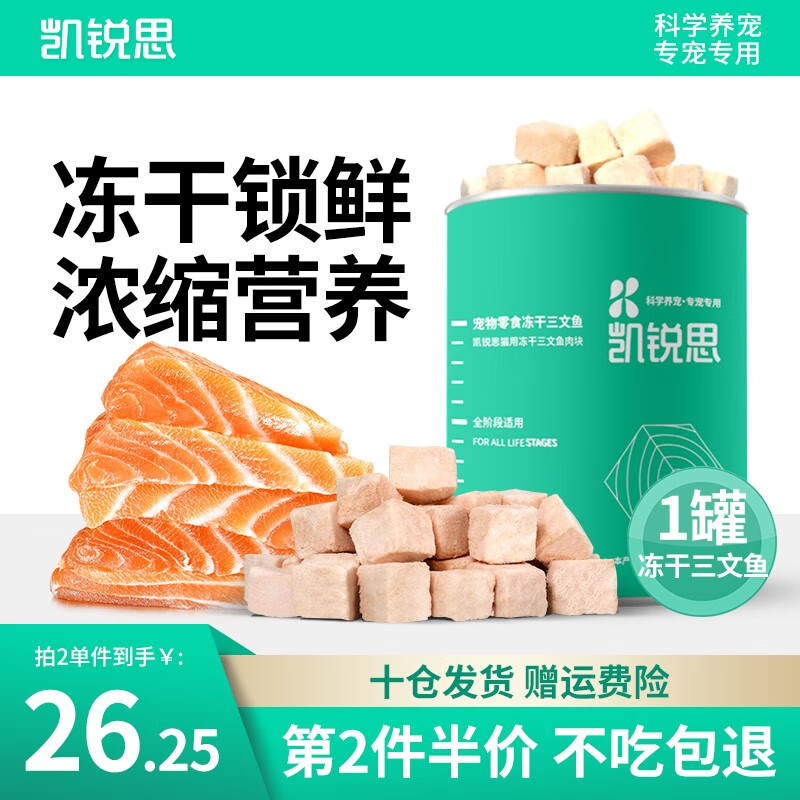 凯锐思 宠物猫咪零食冻干鸡肉块多春鱼三文鱼幼猫成猫增肥营养发腮补钙 冻干三文鱼1罐