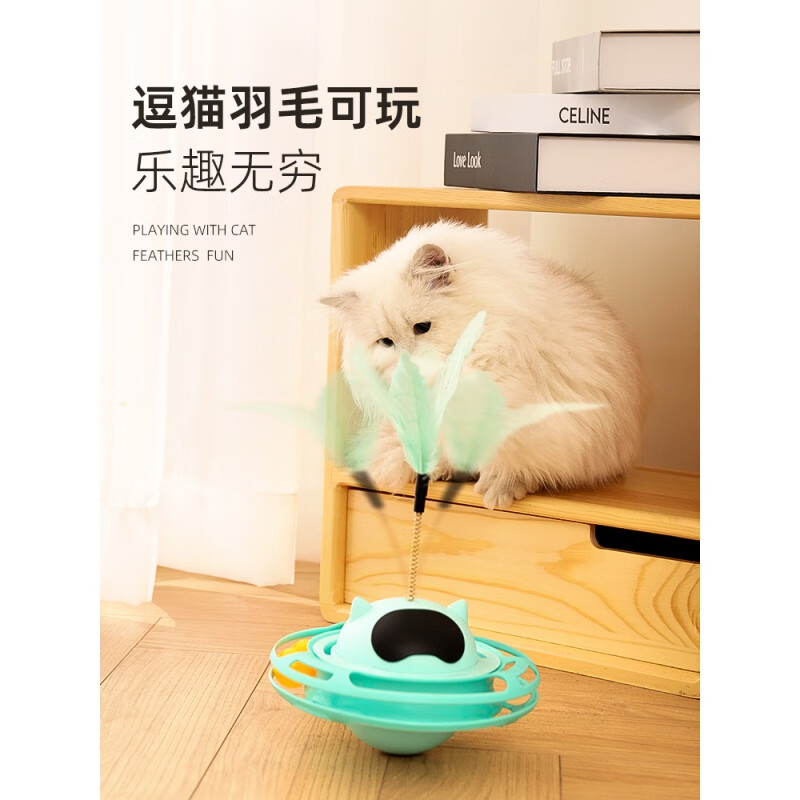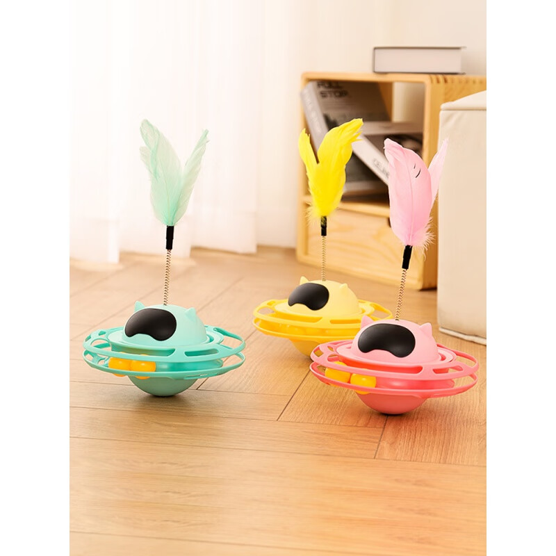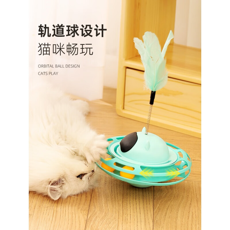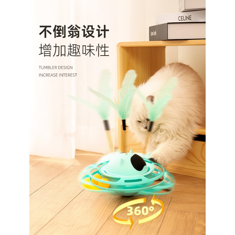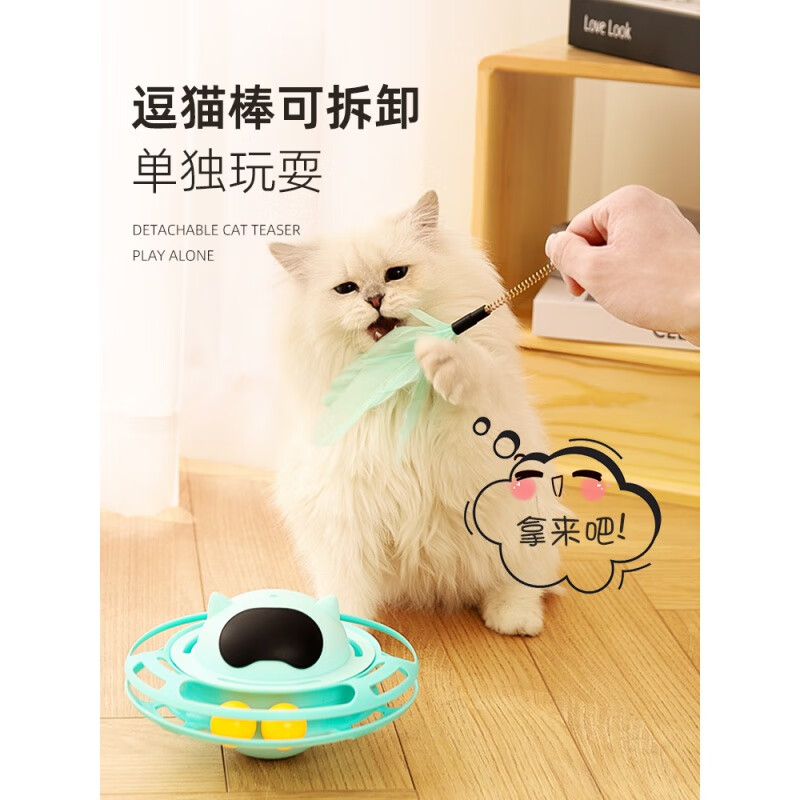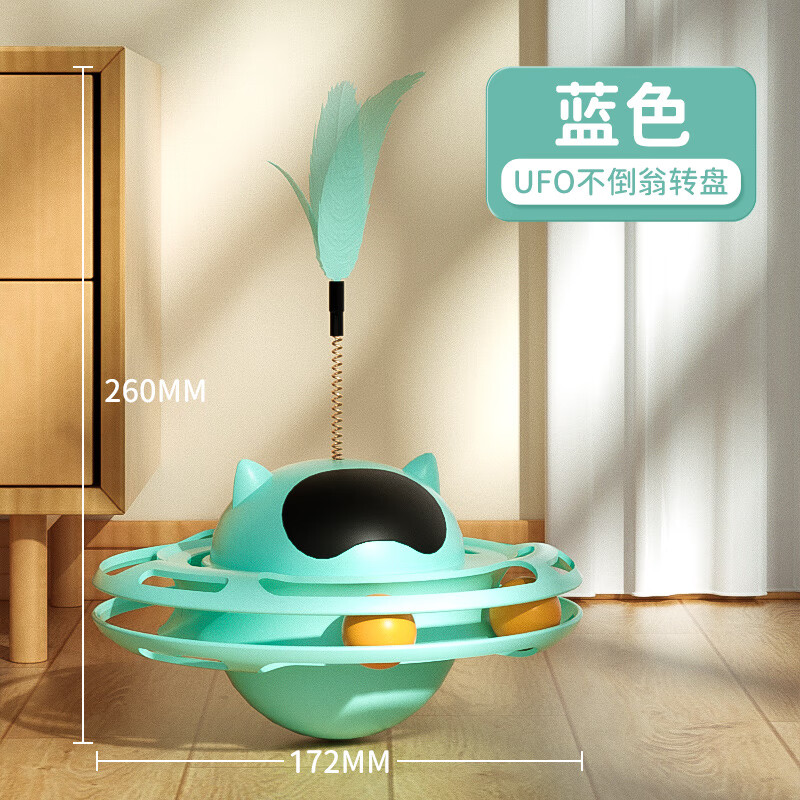 自动猫玩具不倒翁自嗨解闷逗猫棒幼猫小猫转盘猫玩的猫咪用品大全 UFO不倒翁转盘-蓝色